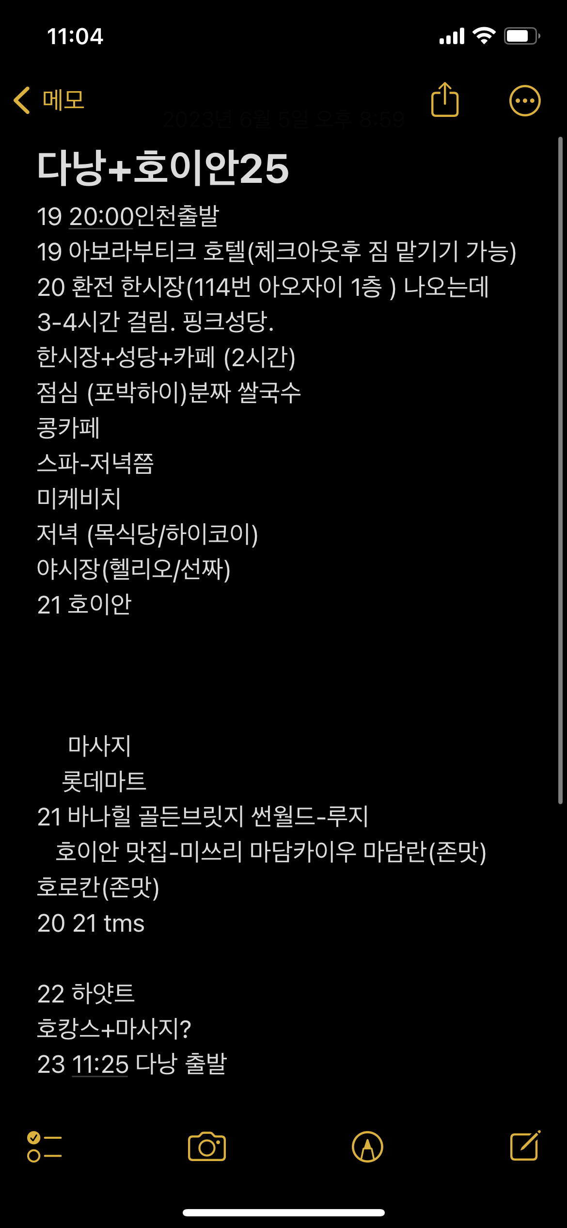 다낭 일정을 짜는데 최근에 다낭 갔다온 사람이 주위에 많아서 열심히 메모장에 받아적었다!