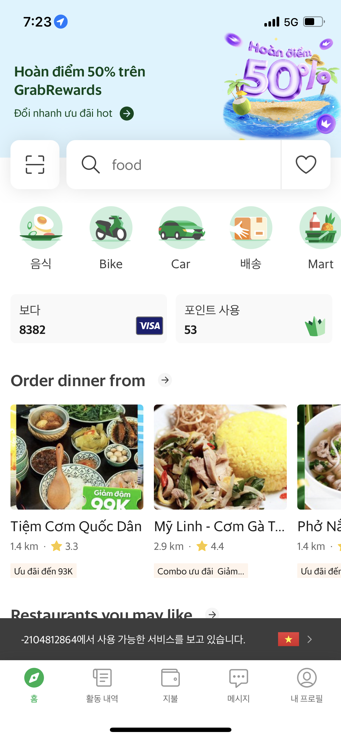여기 쌀국수도 줬었는데 별로 안땡겨서 저것만 먹었다.