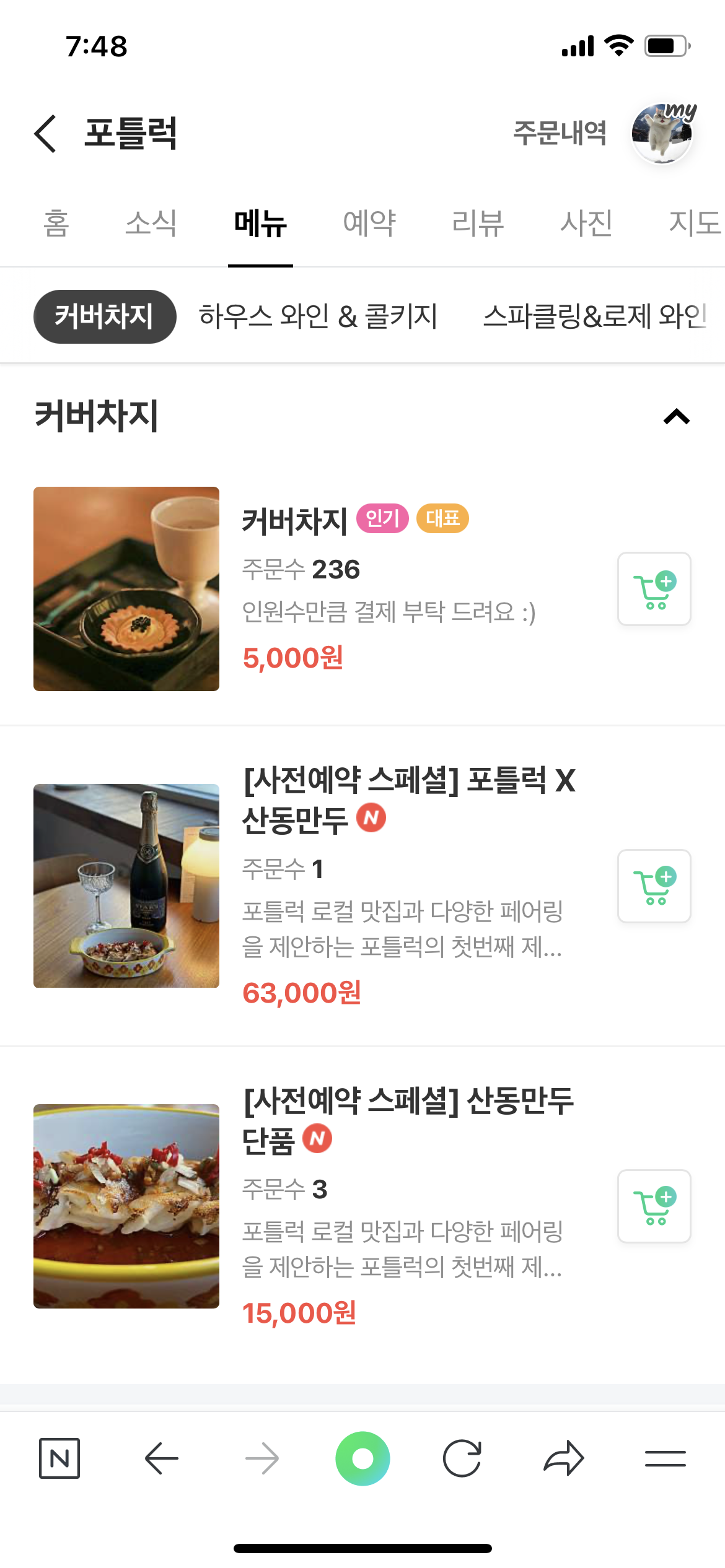 인당 커버차지를 받기 때문에 장바구니에 담고 원하는걸 시키면 된다. 커버차지 비만 받는게 아니라