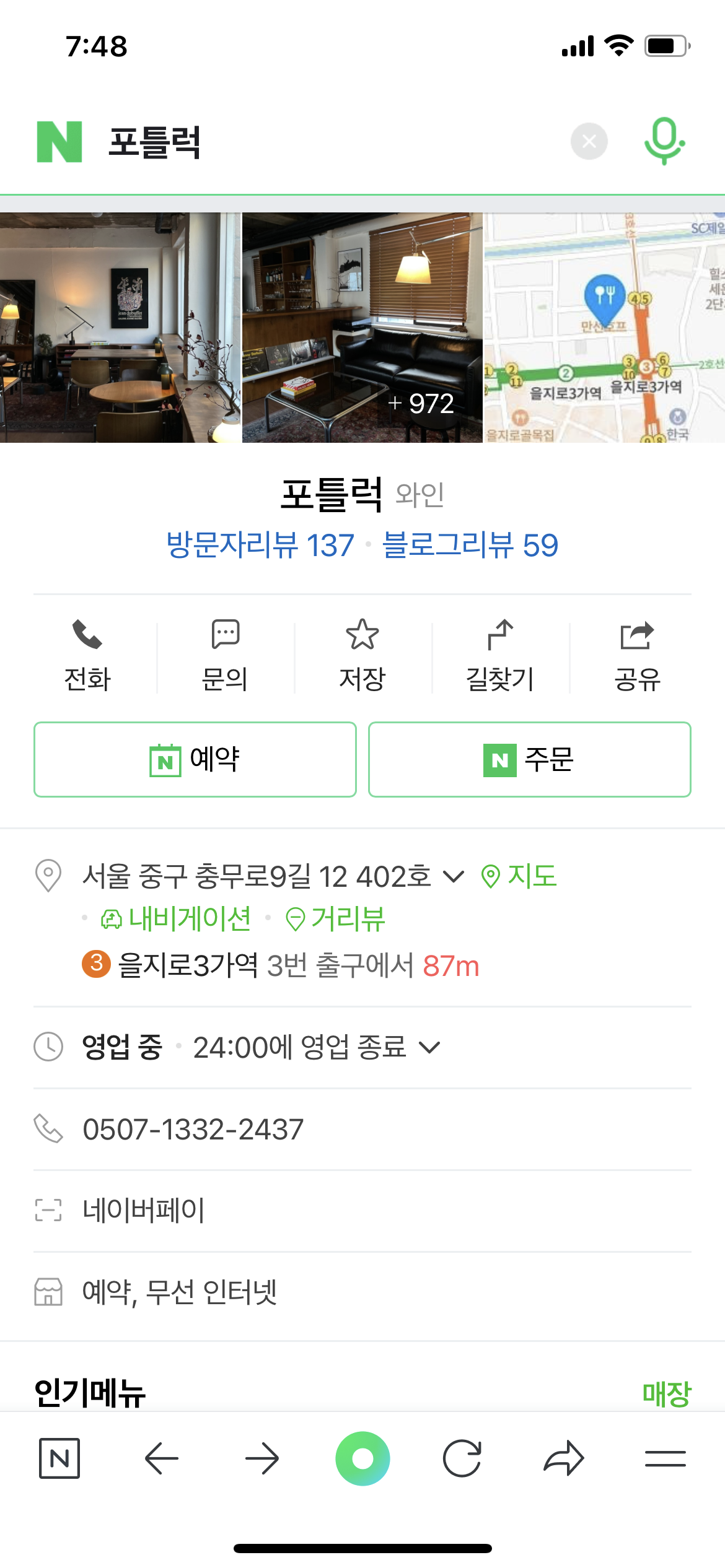 주문은 네이버에 가게 이름을 치고 저 주문 버튼을 누르면 된다.